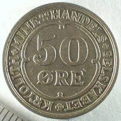 • Three coins from Greenland, dated 1926 and minted in Copenhagen; the common design shows a polar bear on obverse and coat of arms on the reverse. The denominations are 25 ore, 50 ore, and 1 krone. In 1940, 40,000 of the 25 ore pieces were withdrawn, holed at the U.S. mint in Philadelphia, and sent back to Greenland for use as 5 krone pieces.