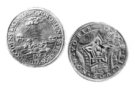 The great development of the Dutch jetons took place during the reign of the Burgundian dukes. In 1433 duke Philip the Good of Burgundy established his power over the most important territories in the Low Countries - Brabant, Flanders, Hainault, Holland and Zeeland. He introduced the jeton as an instrument of propaganda. A number of important events of his government were commemorated on counters and the jeton became a small history medal. His successors, the archdukes of Austria and the kings of Spain, continued and enlarged this custom. When the new Chamber of Accounts was opened in Gelderland in 1559 during the reign of Philip II, the officials received several tens of silver jetons each and the rest of the personnel shared 2500 copper jetons, although counters were hardly used for calculating anymore. Tradition was stronger than practice and, besides, everybody was eager to get those beautiful medals with the portraits of the king and queen in his possession. This attitude changed considerably during the Dutch Revolt (1568-1648).